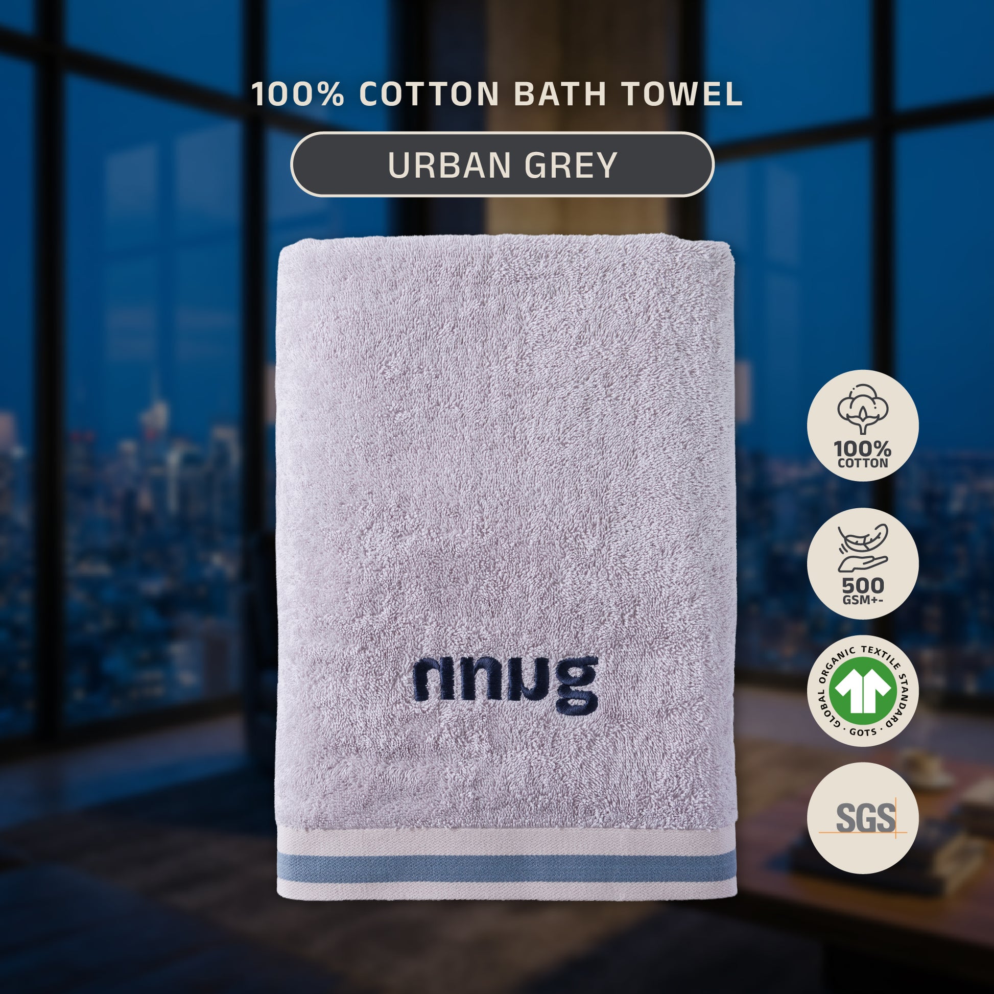 NNUG 100% Organic Cotton Towels - Urban Grey